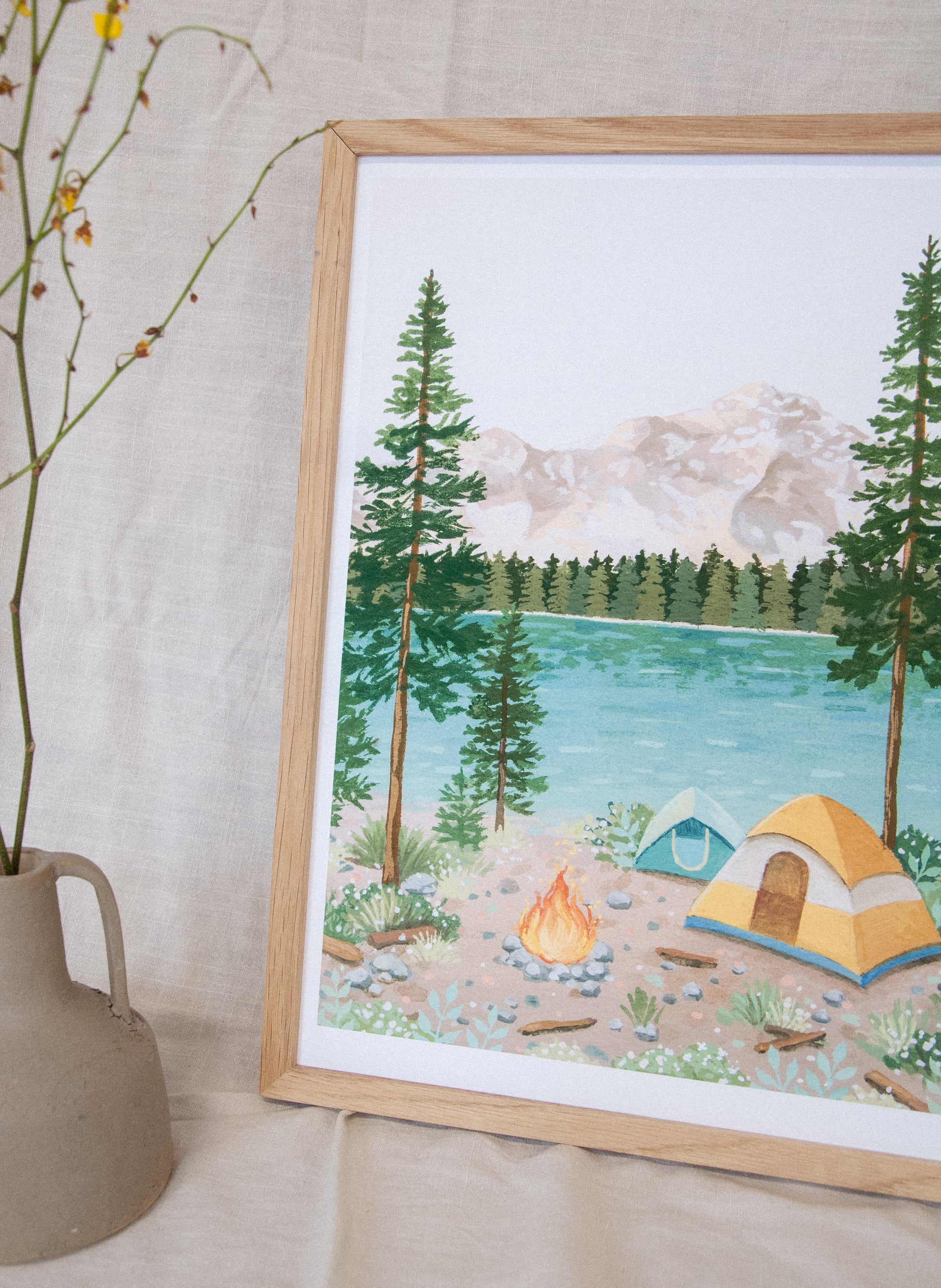 Bring the outdoors in with this cozy print — warm up by the fireside as you spend a relaxing afternoon by the lake.